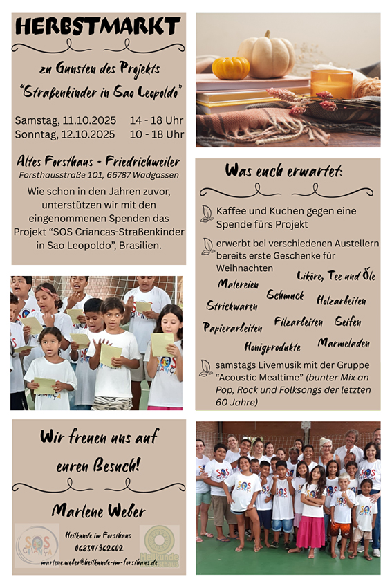 2024: Zu unserem Hilfsprojekt für Straßenkinder in Brasilien "SOS Crianca" veranstalten wir in diesem Jahr erstmalig einen