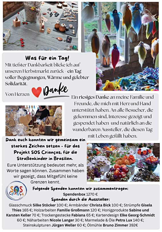 2024: Zu unserem Hilfsprojekt für Straßenkinder in Brasilien "SOS Crianca" veranstalten wir in diesem Jahr erstmalig einen